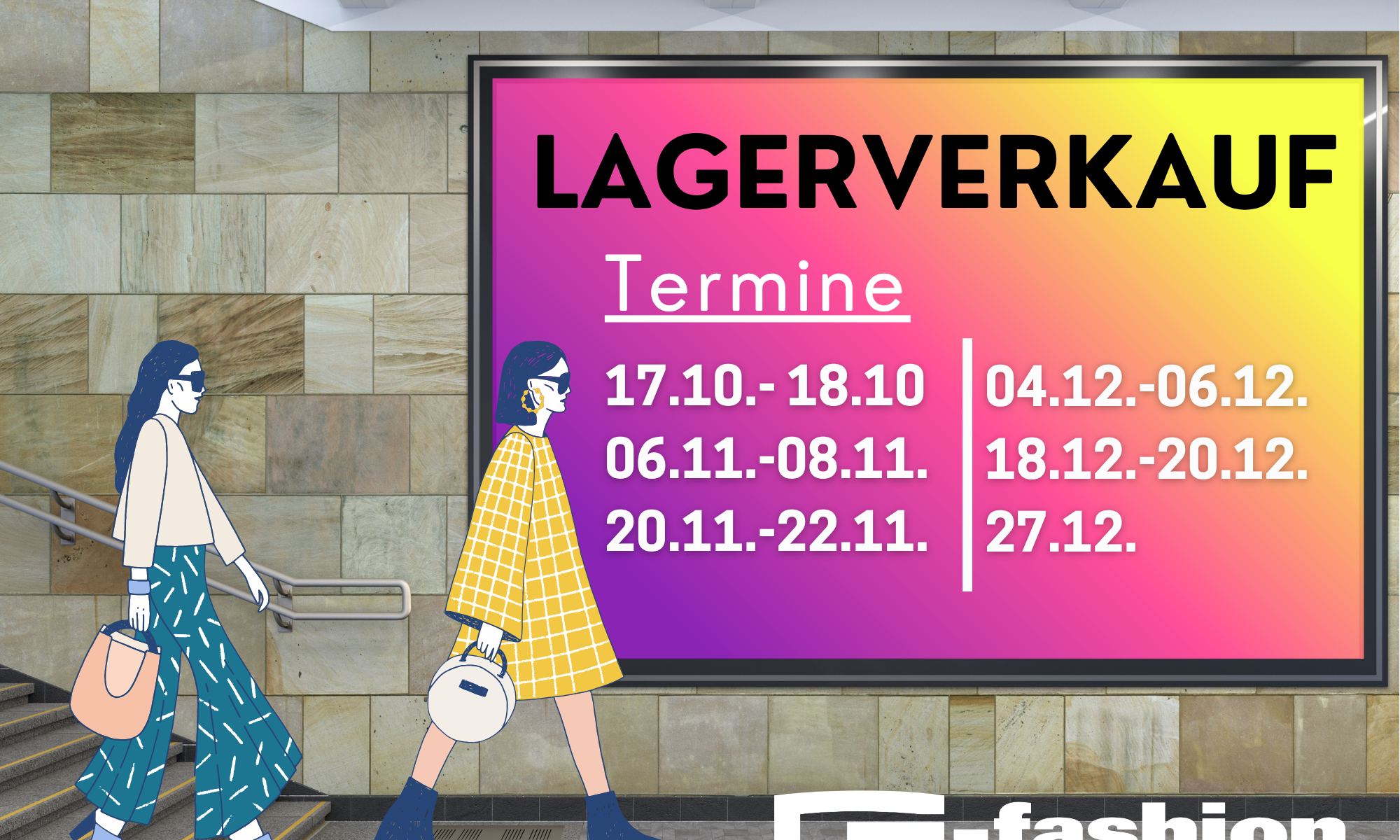 2025 Lagerverkauf Termine Auch 2025 findet der große G-fashion Lagerverkauf statt. Hier findest du die nächsten Termine Wo? Esbachgraben 1, 95463 Bindlach Öffnungszeiten Mo. – Sa. 10:00 – 19:00