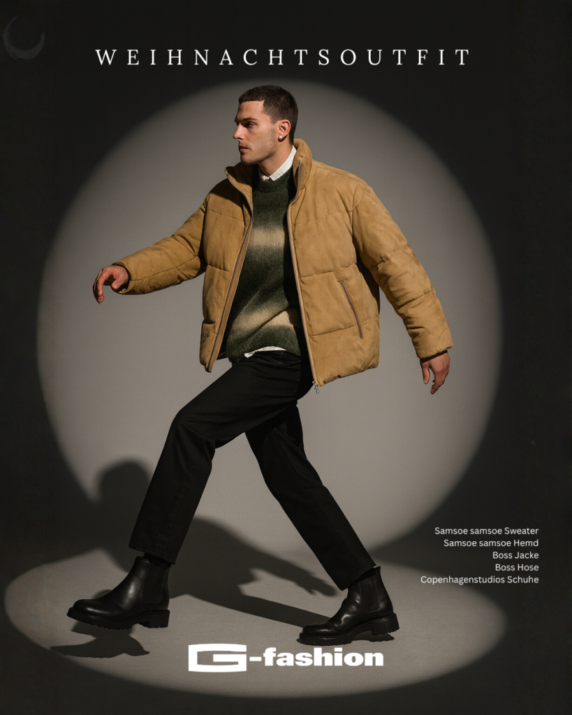 Für Herren wird es in diesem Jahr minimalistisch und modern. Elegante Schichten, cleane Schnitte und warme Töne definieren den Weihnachtsstil 2025. Ob lässiger Pullover von HUGO, Mantel von BOSS oder kuscheliger Strick von Samsoe Samsoe – hier trifft Komfort auf Klasse. Starke Boots von Copenhagen Studios vollenden die Looks mit maskulinem Feinschliff.